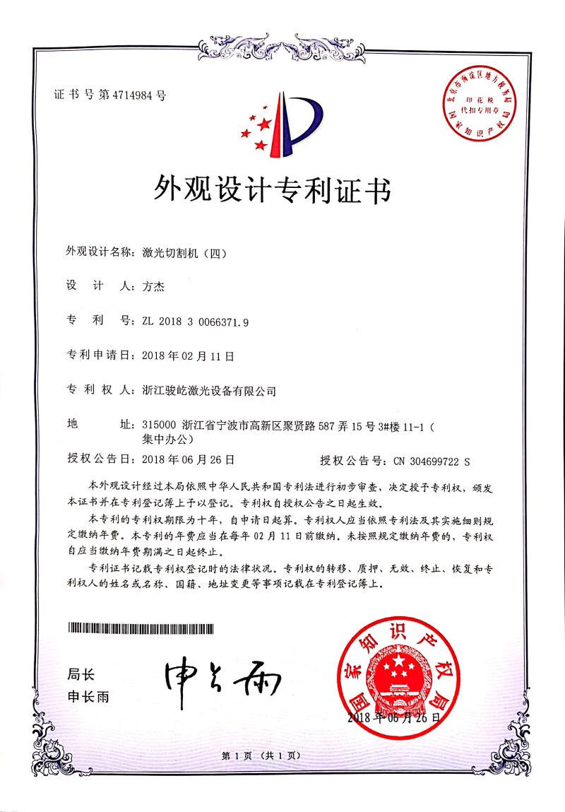 外觀設計專利證書